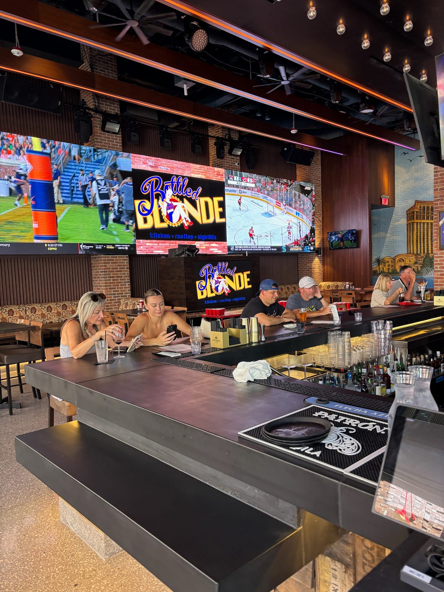 Bottled Blonde is part of Evening Entertainment Group (EEG), the Arizona-based company behind the original Scottsdale and Dallas locations. The Las Vegas venue reportedly represents a $50 million investment, and EEG has positioned it as a hybrid sports bar–nightlife experience designed to stand out on the Strip without trying too hard. Knowing the people behind the brand gives some context to why the service is so attentive and the concept feels refined yet approachable — they’ve clearly learned from their other locations, and Vegas might just be the perfect place for their next-level bar experience.