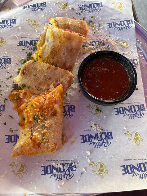 We ordered the pretzel board and a Pepp Roll (basically a giant calzone/pizza roll hybrid). Both were better than they had any right to be for a “sports bar.”