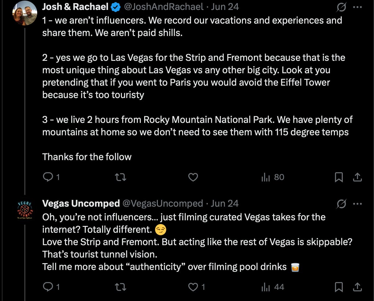 Meet Josh & Rachael, self-declared non-influencers who just happen to film curated Vegas content and push surface-level hot takes like it’s their side hustle.