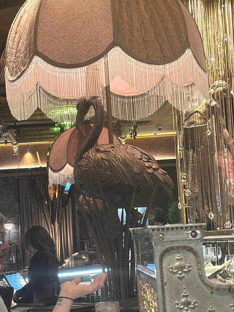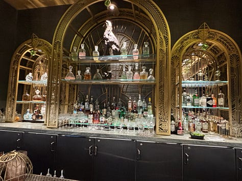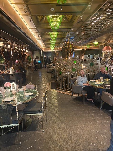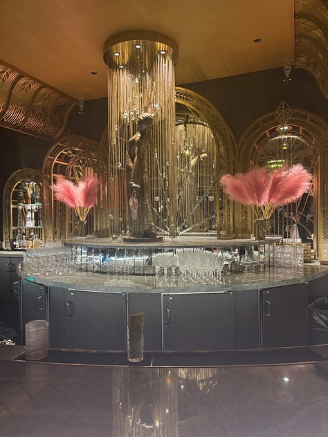 The décor is familiar but different. Similar bones to the Paris location, but warmer. More gold. More green. Less “Vegas nightclub,” more “Grandmaw Steampunk” and I mean that in the best way possible.