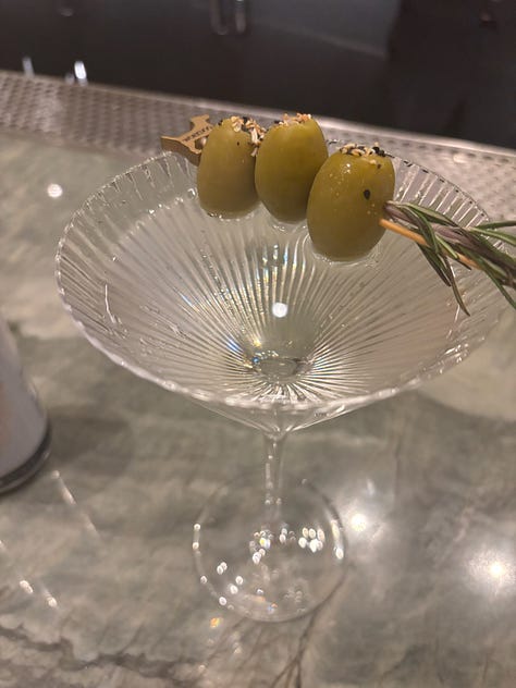 My wife started with a Dirty Dog, swapping gin for vodka. Normally, I just ask bartenders to shake vodka and olive juice and call it a day. This one? She crushed it without hesitation, even with the vermouth and rosemary.