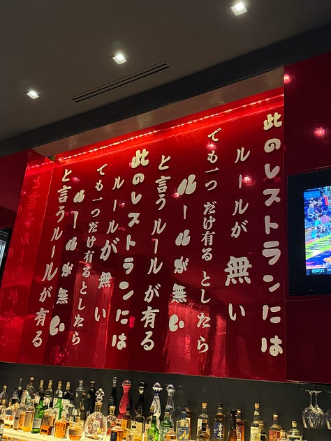 At the bar, the first thing I noticed was the giant wall of Japanese text I still can’t read, and yes, I wish I could because it’s stunning.