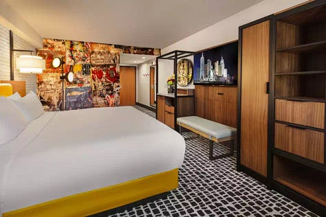 Between 2023 and 2025, MGM poured more than $63 million into renovating every room at New York-New York. Instead of leaning harder into heavy theming, they went the opposite direction, redesigning the spaces into modern “Soho loft” style rooms. Brighter finishes, smarter storage, cleaner layouts, and a contemporary NYC apartment feel replaced the older décor.
