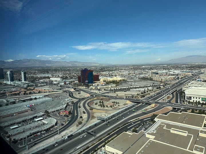 Is it neon chaos? Are you staring at a view of the strip, maybe with the Sphere or the Bellagio fountains going off in the background?