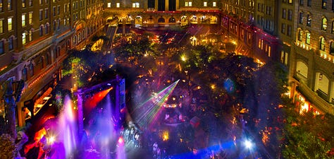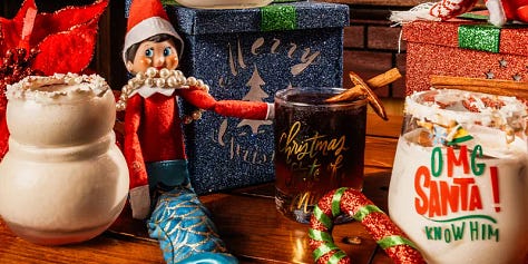 Cheap bars, great people-watching, and holiday chaos that feels aggressively on-brand. I just hope the dancing gorilla has a santa hat.