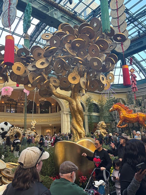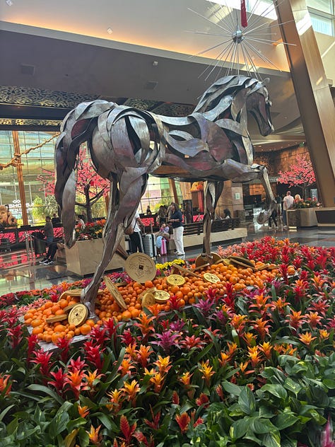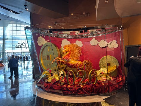 If you’re born in 1966, chime in, how spot-on is this? The rarity makes 2026 special. Vegas leans into it hard. Strip decked in red, horses everywhere, lanterns swinging, the whole vibe screaming opportunity and courage.
