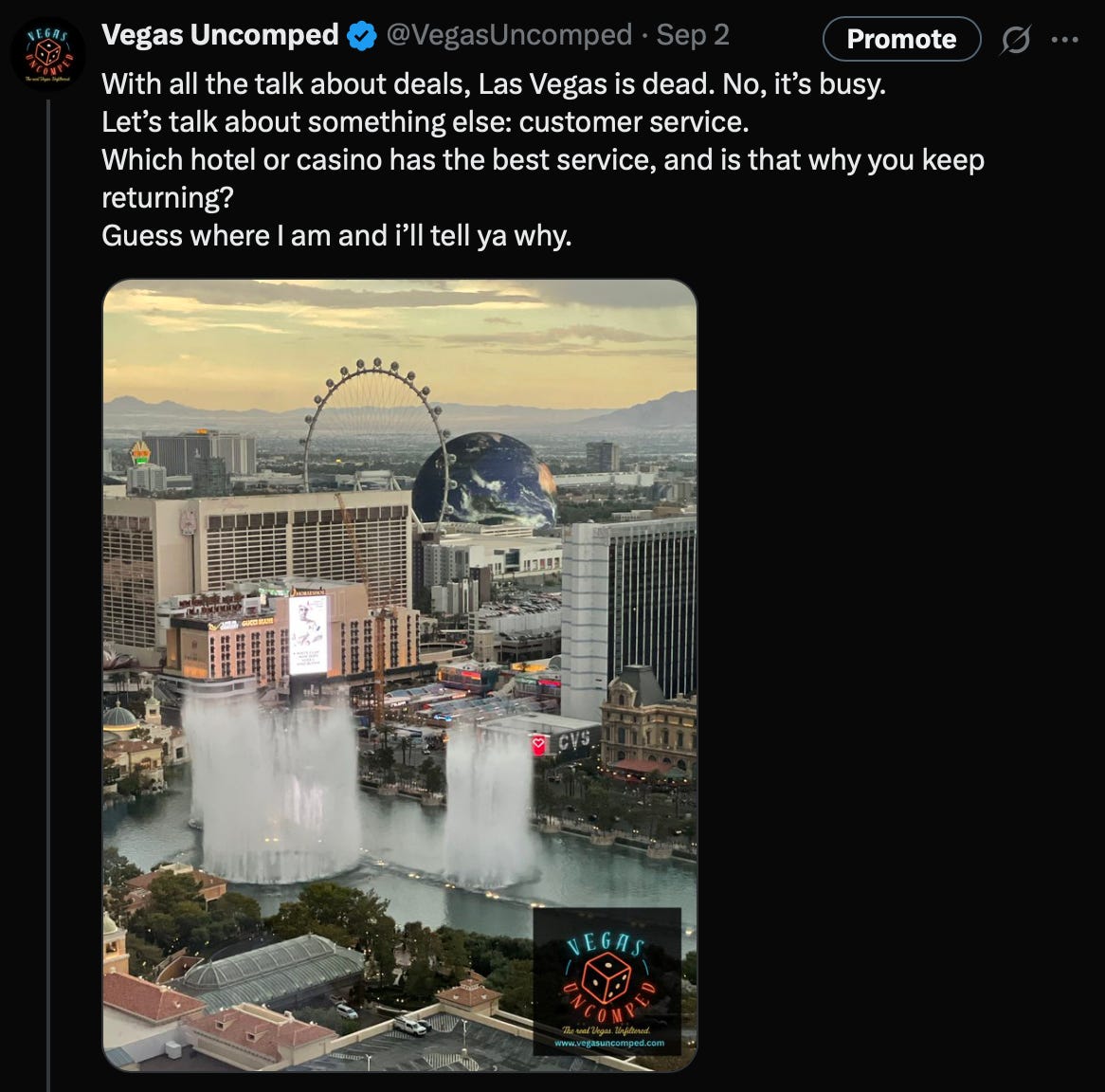 A while back, I tossed out an X post that lit up my feed: “With all the talk about deals, Las Vegas is dead. No, it’s busy. Let’s talk about something else: customer service. Which hotel or casino has the best service, and is that why you keep returning? Guess where I am and I’ll tell ya why.”